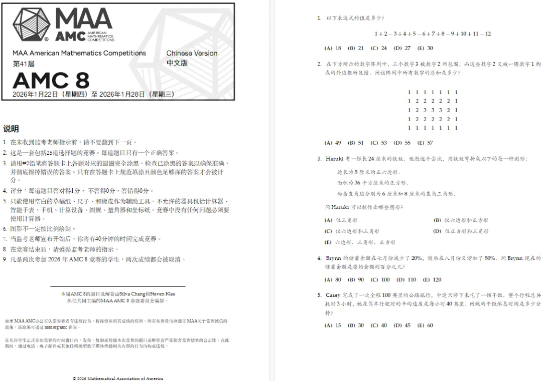 2026年AMC8数学竞赛真题: