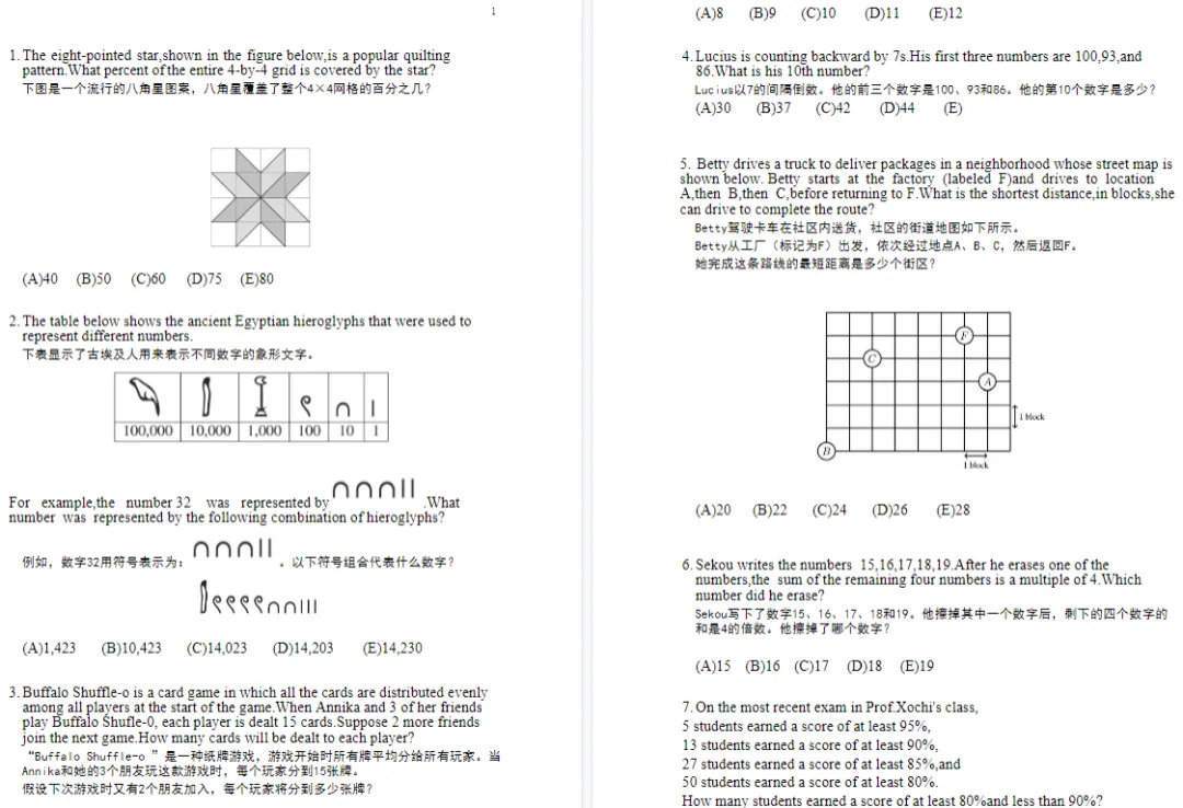 这套AMC8数学竞赛历年真题包含: