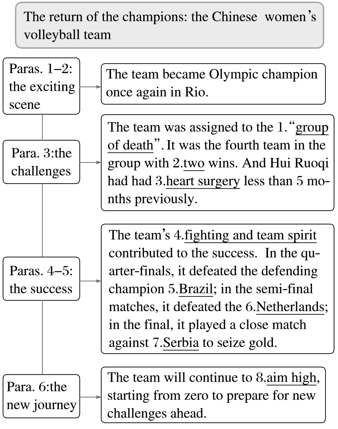 5.What made the Chinese women’s volleyball team win the gold medal in Rio?