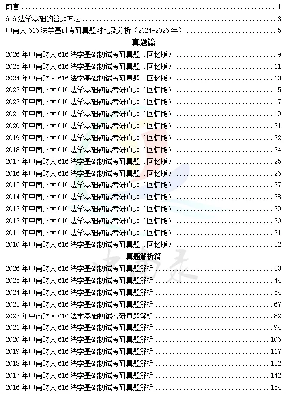 真题解析这个部分,不单单是真题的罗列,更有中南录616教研组的答题技巧分析、考试趋势分析,复习启示等,帮助大家了解出题规律,更高效开启616的复习之旅。