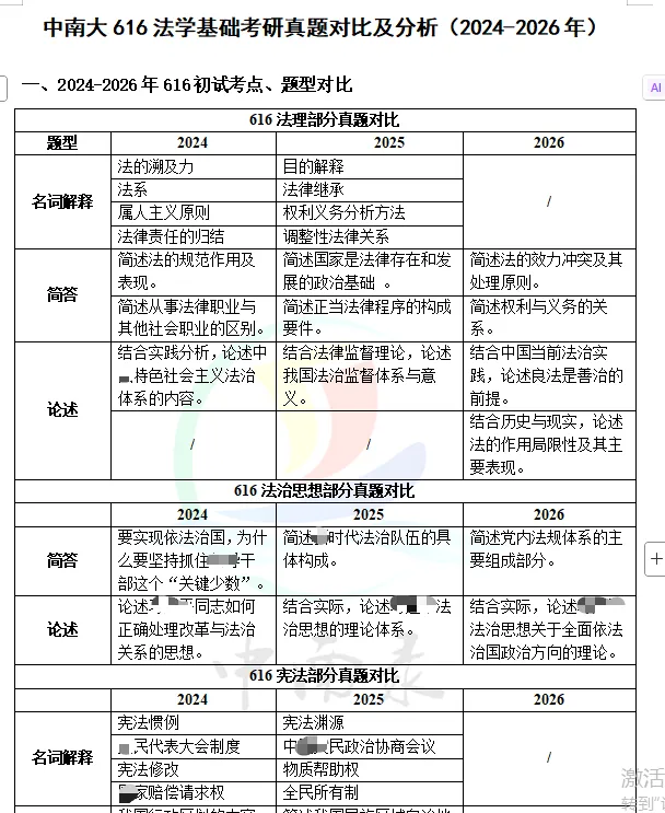 在上年度中,中南录616精讲讲义完成对未超纲考点的全部覆盖(仅miss一道法理超纲题)。在刚刚落下帷幕的26考研中,中南录616讲义再次对所有未超纲考点进行了全数覆盖(行政区划调整的原则的内容因与行政区划的原则有重叠部分,故省去了该处内容,该瑕疵也已完成修缮),对于考研行业业内成熟的今天,全覆盖并非难事,难点在于保持资料精简与全面的平衡,中南录讲义广受好评之处在于讲义保持“详略得当”或者说相当程度精简之时,还能做到全面覆盖。
