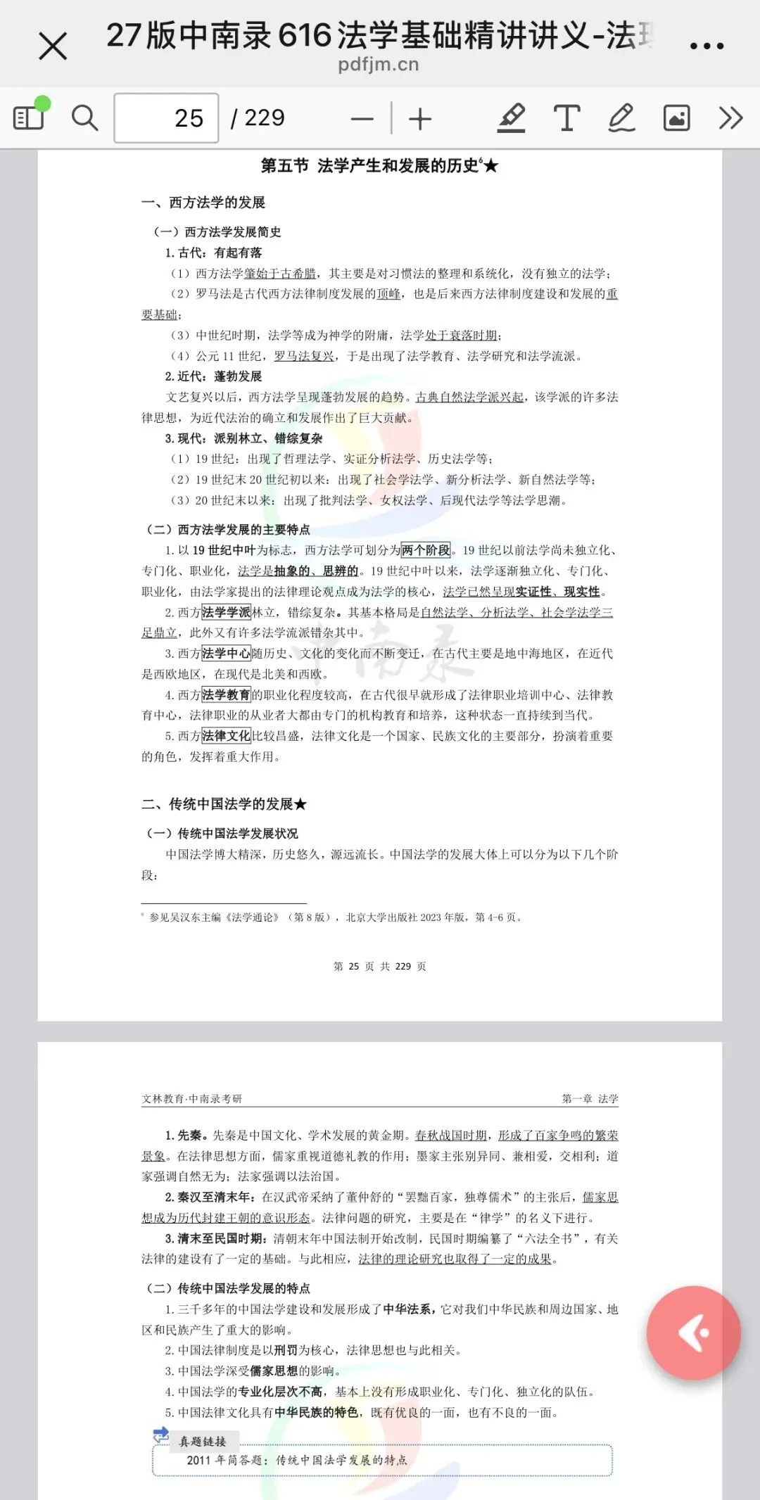1.精讲讲义:连续两年未超纲考点全覆盖【新年惊喜】中南录26版616法学基础精讲讲义免费领取