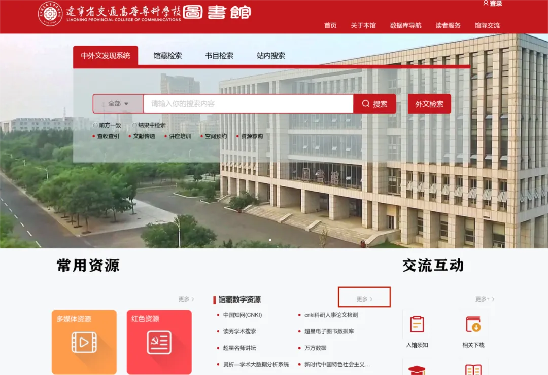 ①“馆藏数字资源”→“更多”
