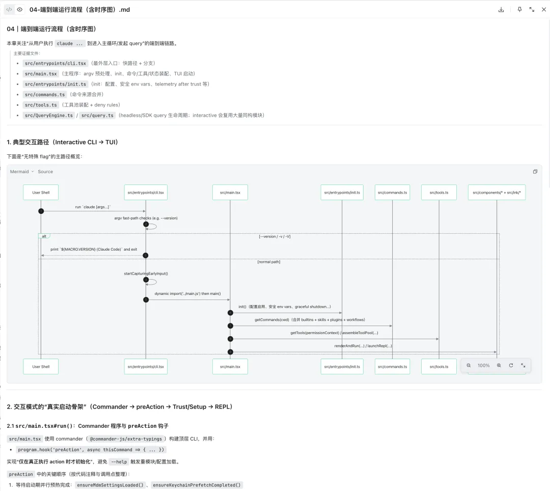 Claude Code 的代码就是一个极端案例。据一些公开讨论,它一共有 2,203 个文件、51.2 万行 TypeScript,光入口文件 main.tsx 就有 4,683 行,单个 React 组件 REPL.tsx 写了 5,005 行、包含 227 个 hook 调用。如果没有方法论指引,随便从哪里切入都会迷失。