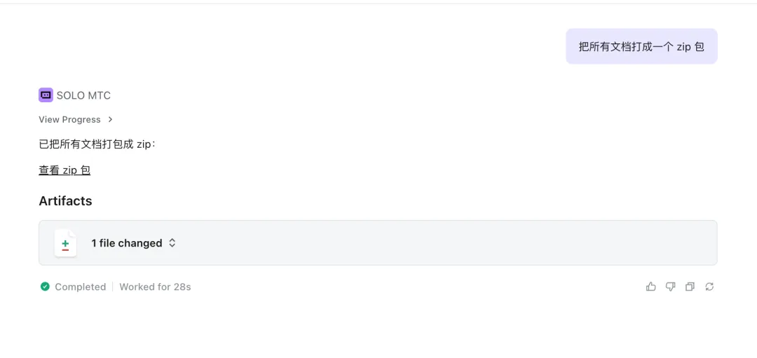 你可以顺便让 AI 把所有文档打成一个 zip 包,然后下载到本地