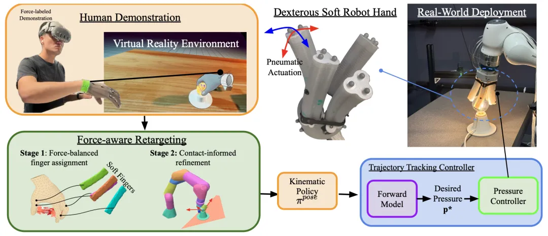 📌 Soft Robotics · Learning from Demonstration · Force-aware Retargeting · Contact-rich Manipulation
