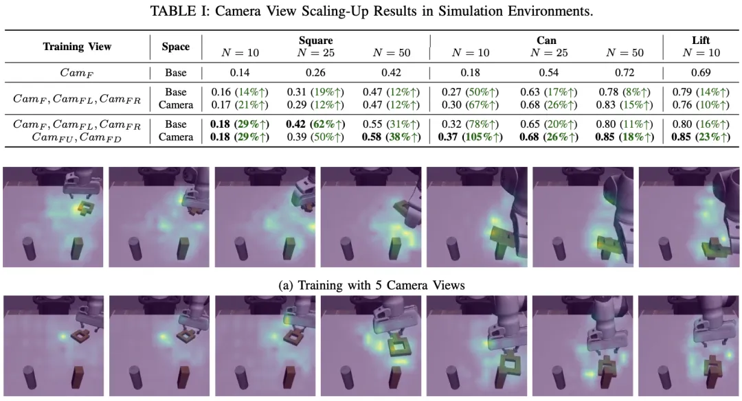 📖 该工作指出,模仿学习策略的泛化能力受限于专家演示的场景多样性,而收集不同环境下的演示成本高昂。为此,本文提出一种简单高效的策略:在采集演示时,利用多个同步相机视角,将单条专家轨迹扩展为多条伪演示轨迹,从而在不增加人力成本的前提下极大丰富了训练数据的视觉多样性。通过系统分析动作空间(基座、末端执行器、相机空间)与视角缩放的关系,并提出一种在推理时融合多视角动作的聚合方法,该方法在仿真和真实机器人操作任务中显著提升了数据效率与泛化性能。