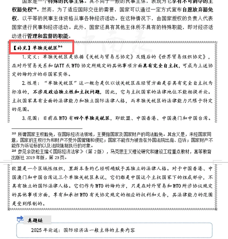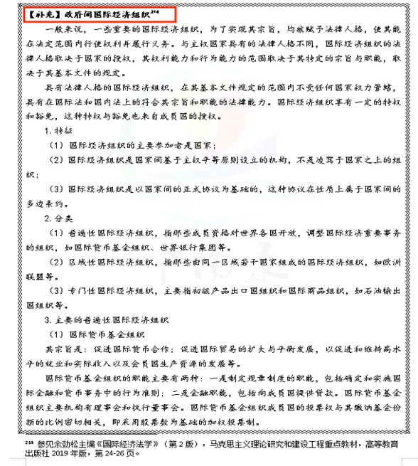 本次国经模块增补,精准聚焦重点考点、理论较深考点、论述题高频考点,有针对性进行全面增补。针对国际货物贸易法、国际投资法、国际金融法、国际税法、国际经济争端解决等核心章节,尤其是往年真题中频繁出现、未来极有可能命题的考点,进行深度拆解,帮助大家构建清晰的论述逻辑。