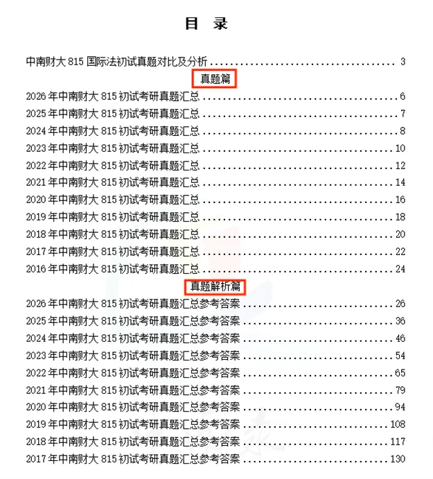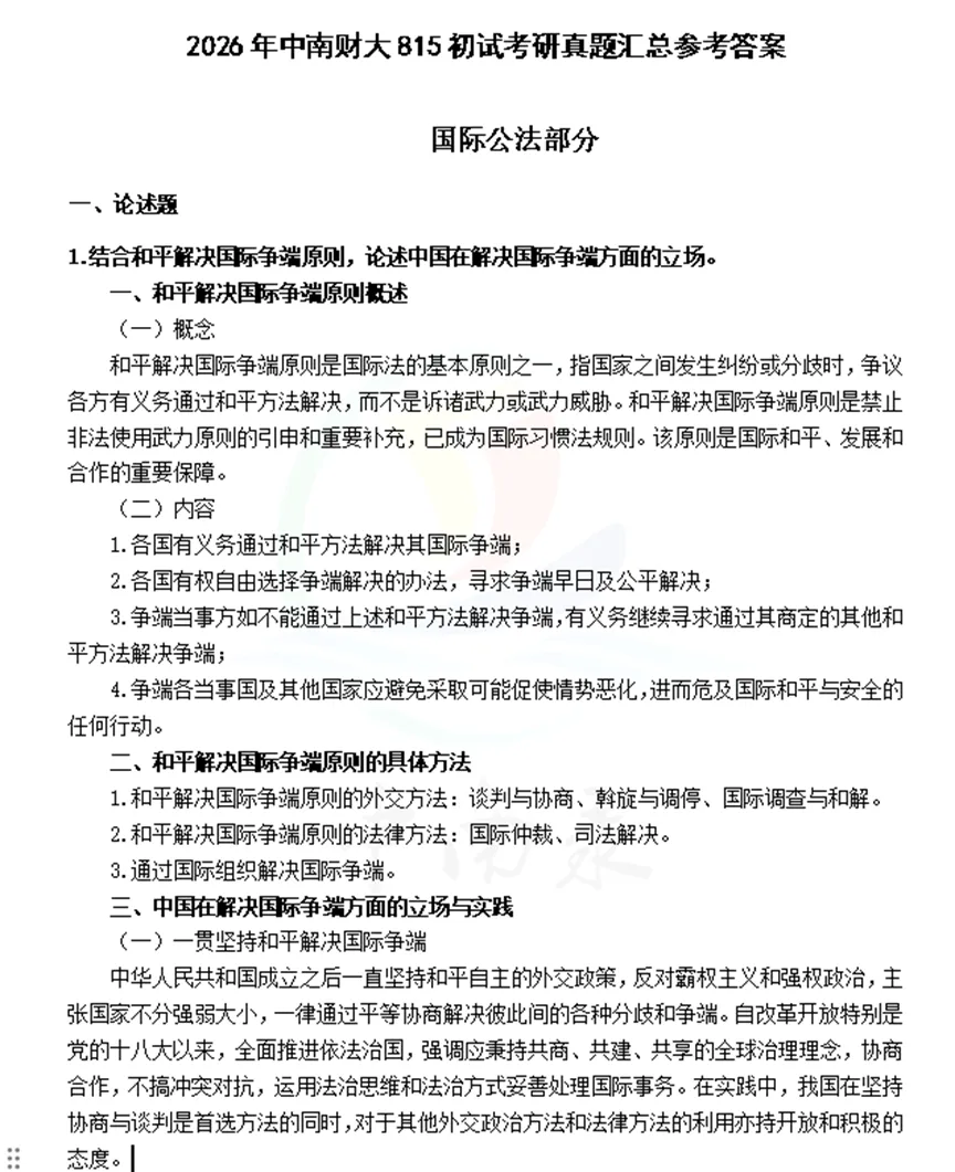 815国际法真题解析涵盖2016-2026年完整真题,搭配2016-2017年真题解析,近3年参考答案经教研组精修打磨,更加贴合考场评分标准,参考性更强。