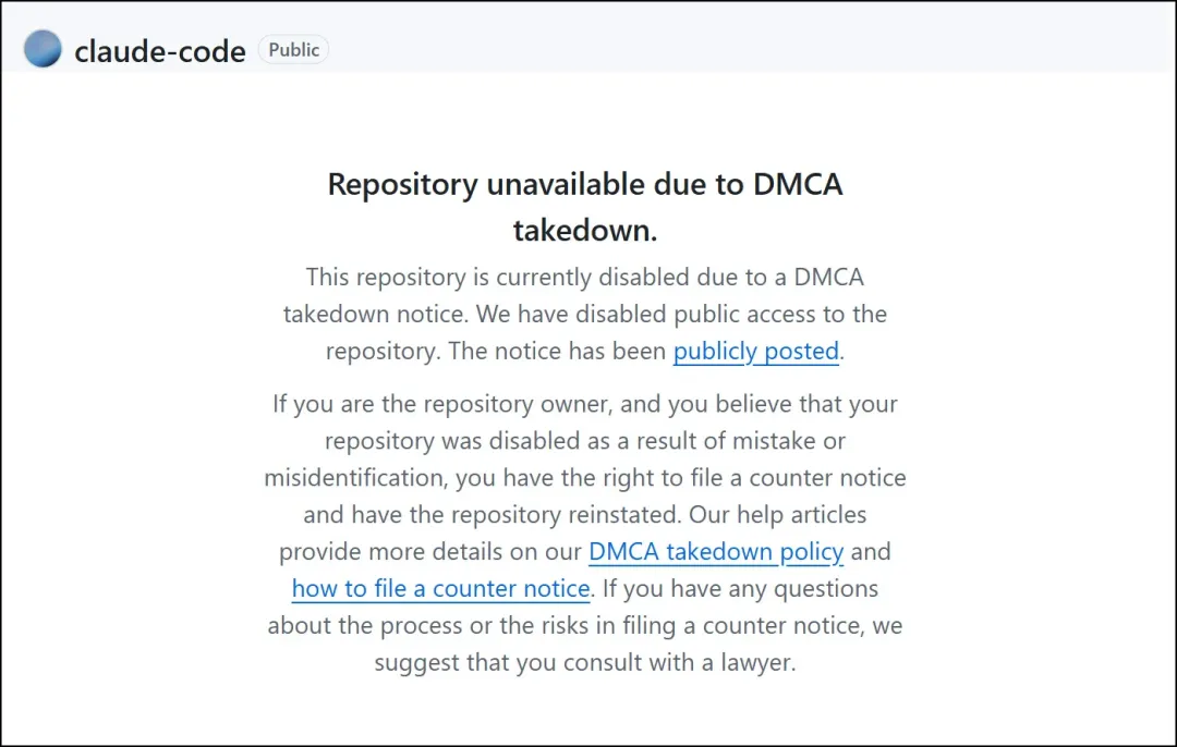 周二晚间,Anthropic向GitHub发出了DMCA版权删除通知(一种美国版权法律武器),要求立刻下架所有泄露代码。GitHub照办了——一口气删除了超过8000个代码仓库。