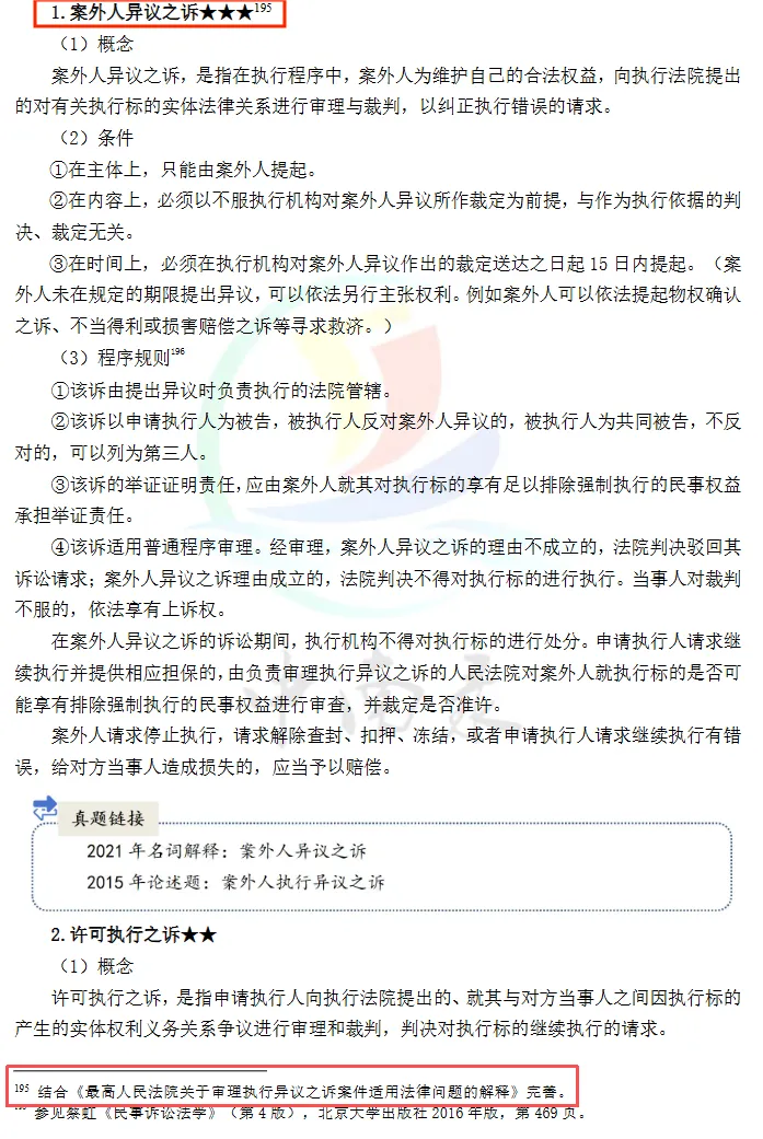 2026年民诉最后一道论述题,要求结合最新司法解释,分析执行异议之诉的程序衔接,这类题目仅依靠教材基础内容无法满足答题要求。对此,27民诉讲义针对性弥补这一空白,结合权威论文对该部分内容进行详细补充,确保考生掌握答题所需的拓展知识点。