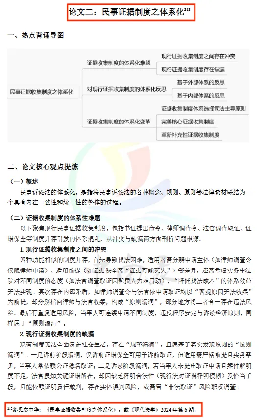 最后,27版民诉和刑诉讲义均在内容最后新增热点论文专题,帮助大家拓展知识深度。新增的论文中不仅收录了本校老师近几年发表的具有可考性的论文,如《民事证据制度之体系化》、《刑事涉案财物处置程序的反思与改革》;也选取了核心期刊中发表的权威论文,意在帮大家了解学界最新观点,如《论刑事缺席审判程序中的证明标准-以被告人在境外类案件为视角》。