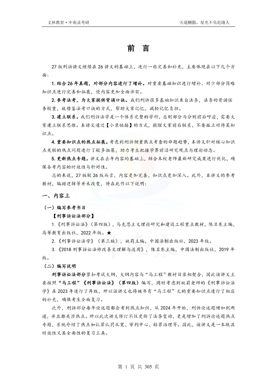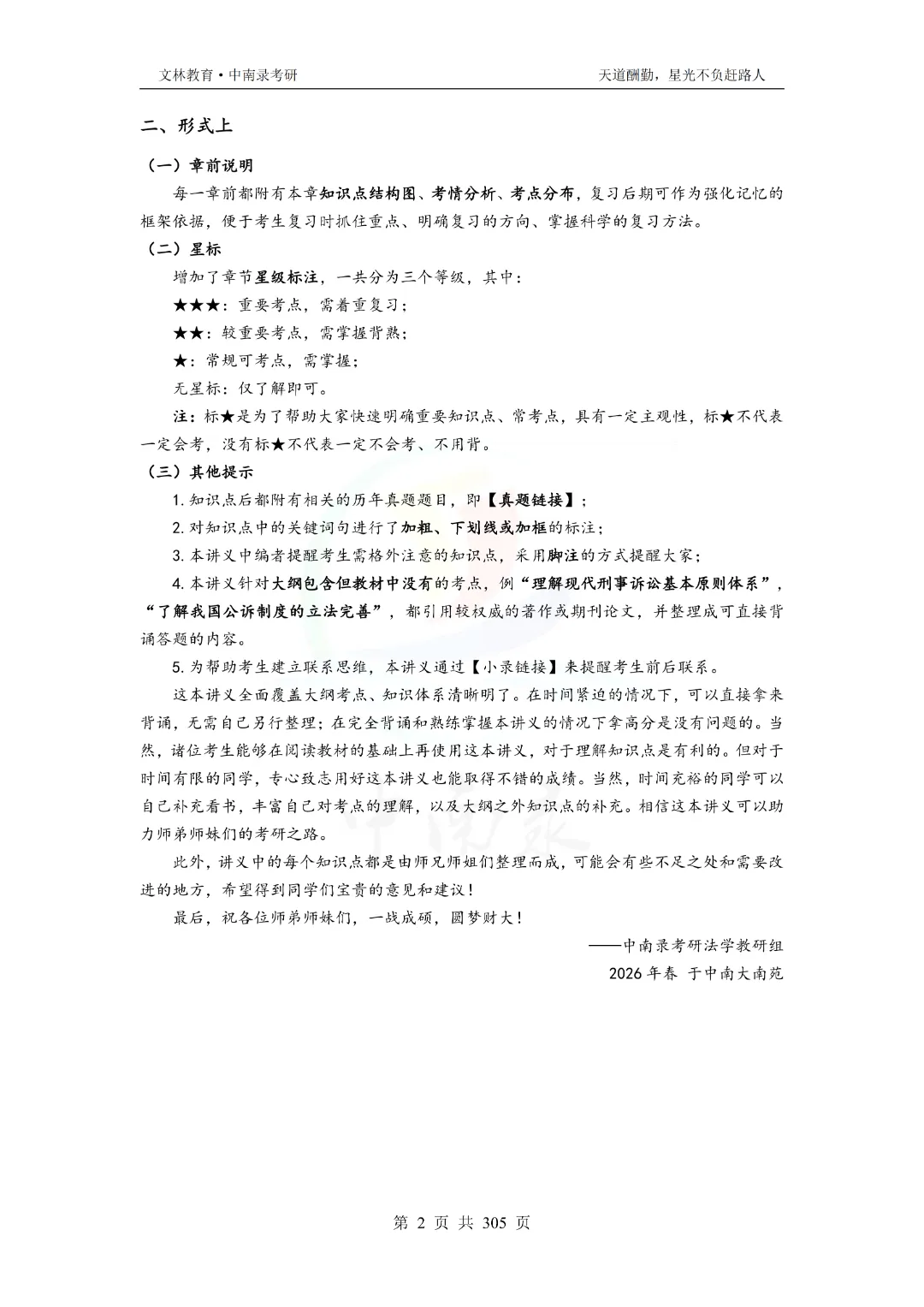 中南录27版812诉讼法学讲义历经精心打磨,编写团队深入研究参考书目、历年真题及学术前沿资料,反复修订、多轮优化,力图实现对考纲知识点的全面覆盖,助力考生高效备考。我们始终以考生上岸为核心目标,这份升级后的讲义,将成为各位考生备考路上的得力助手,助力大家在有限时间内实现复习效率最大化,从容应对考试、成功上岸!