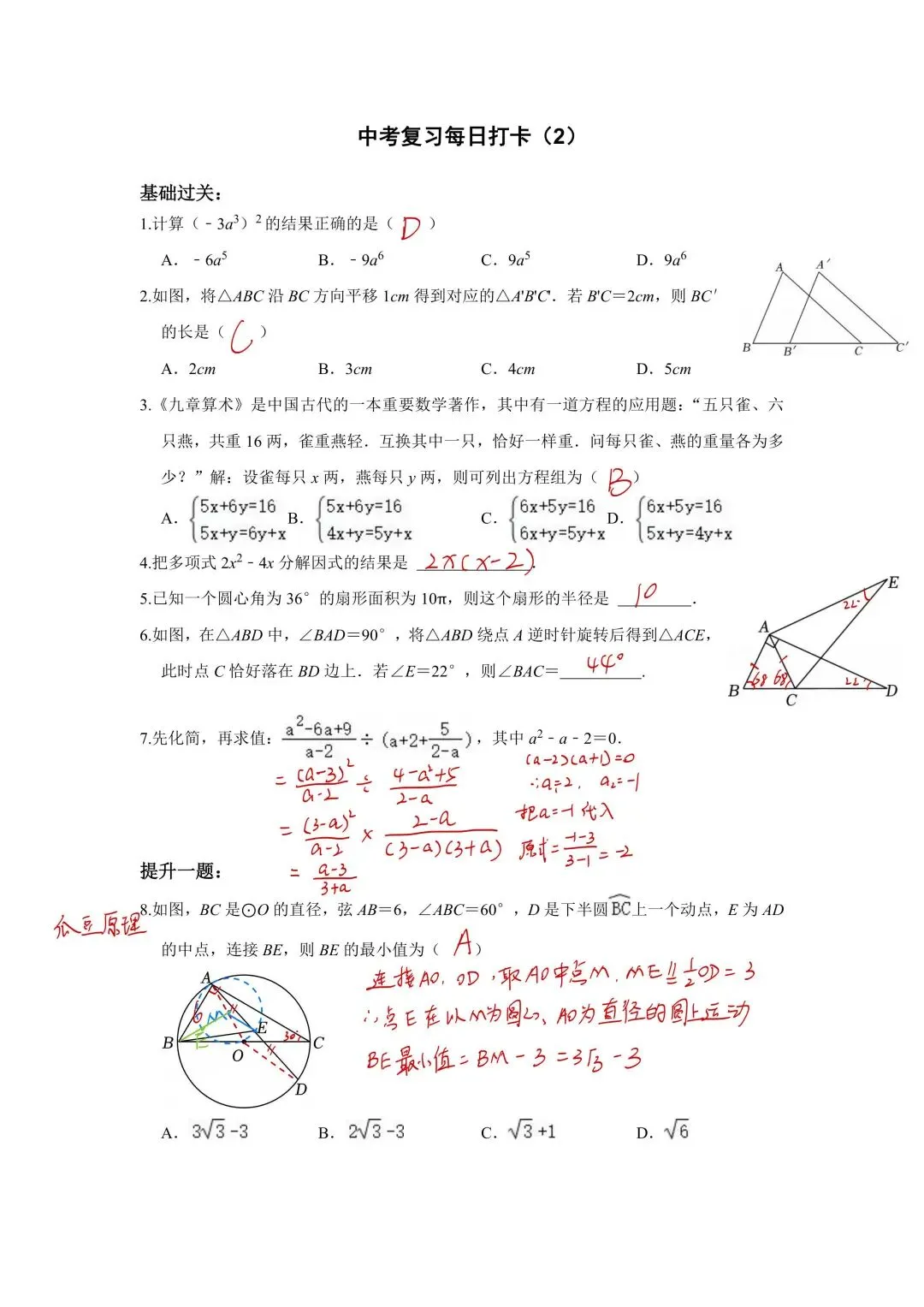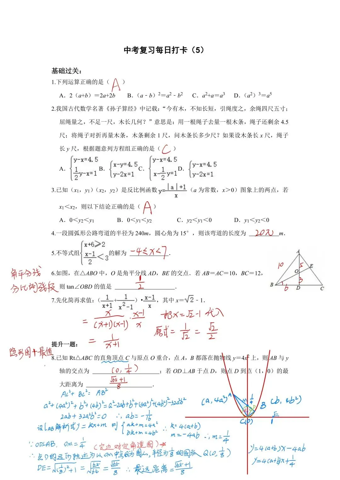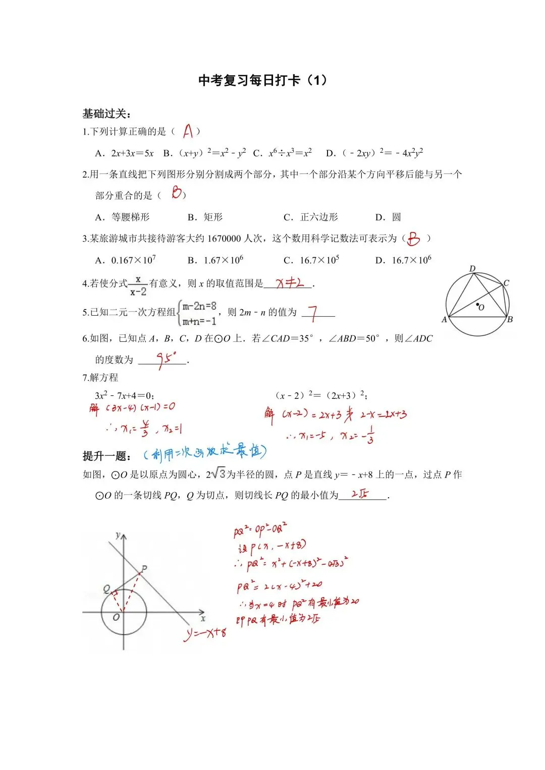 2026数学中考复习每日打卡(电子版可打印)