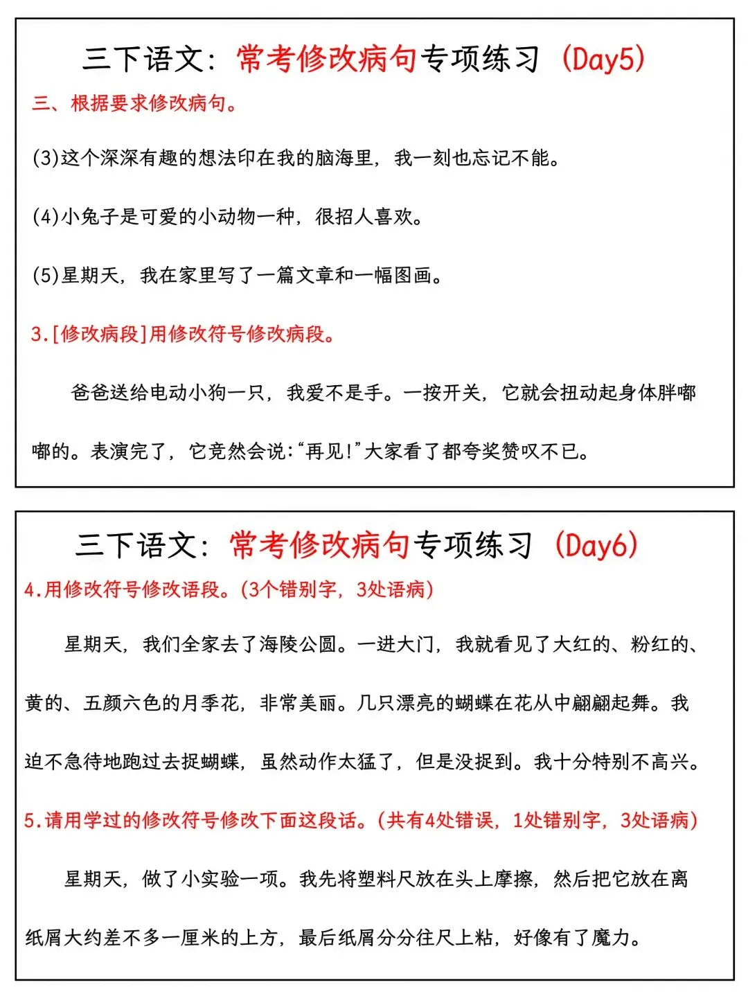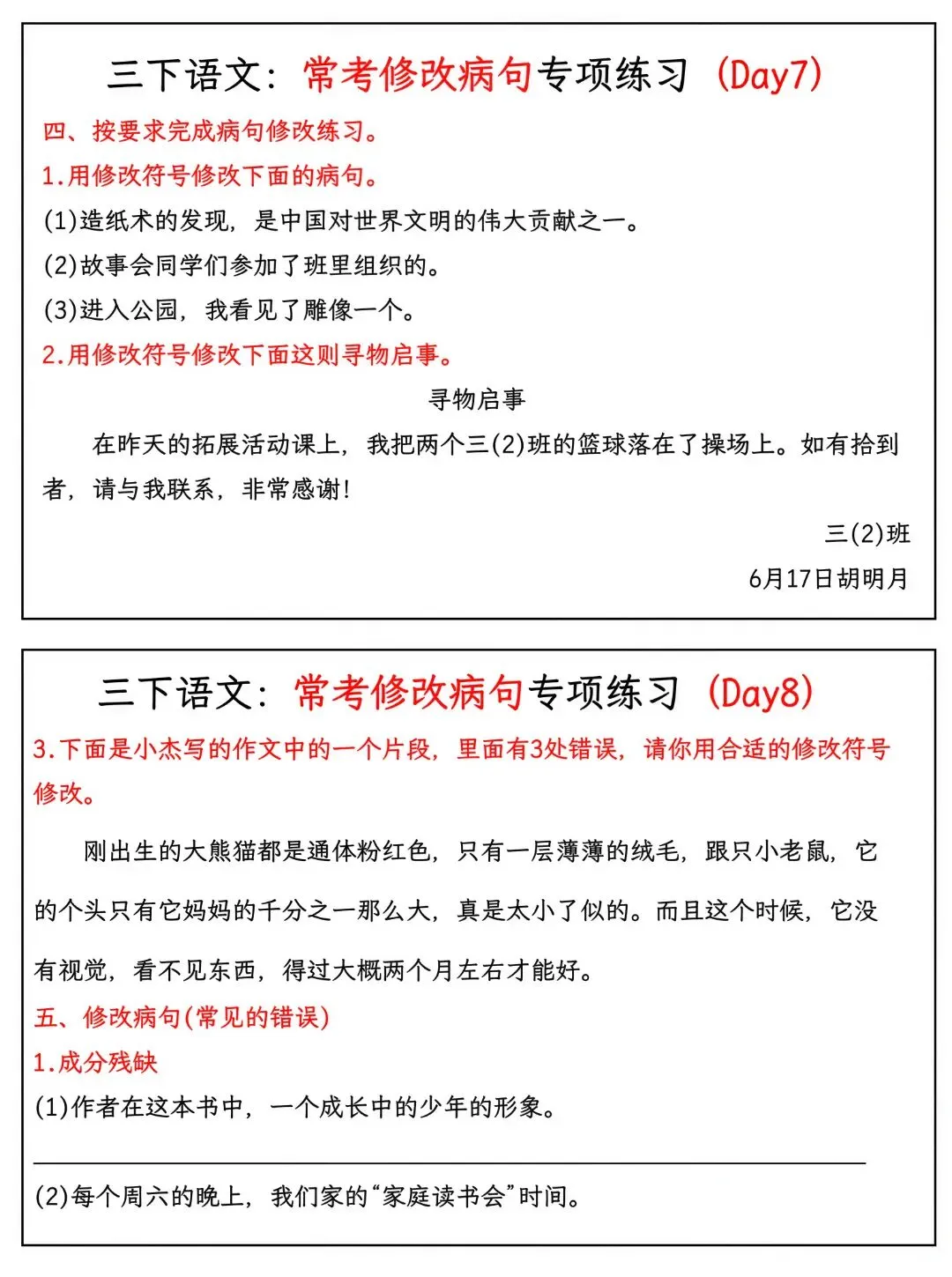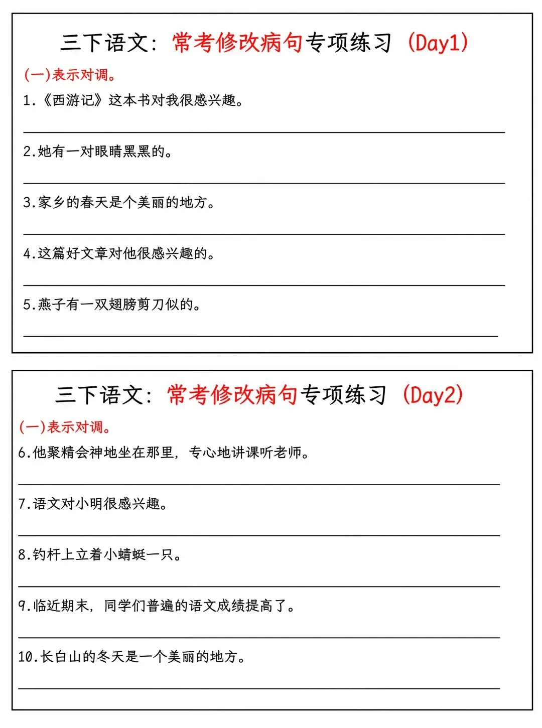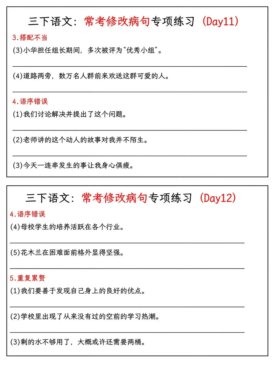 三下语文:常考修改病句专项练习(完整电子版可打印)