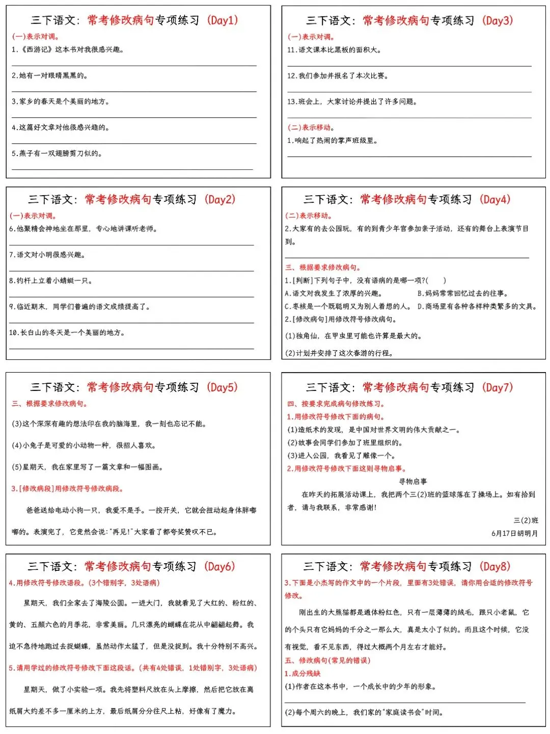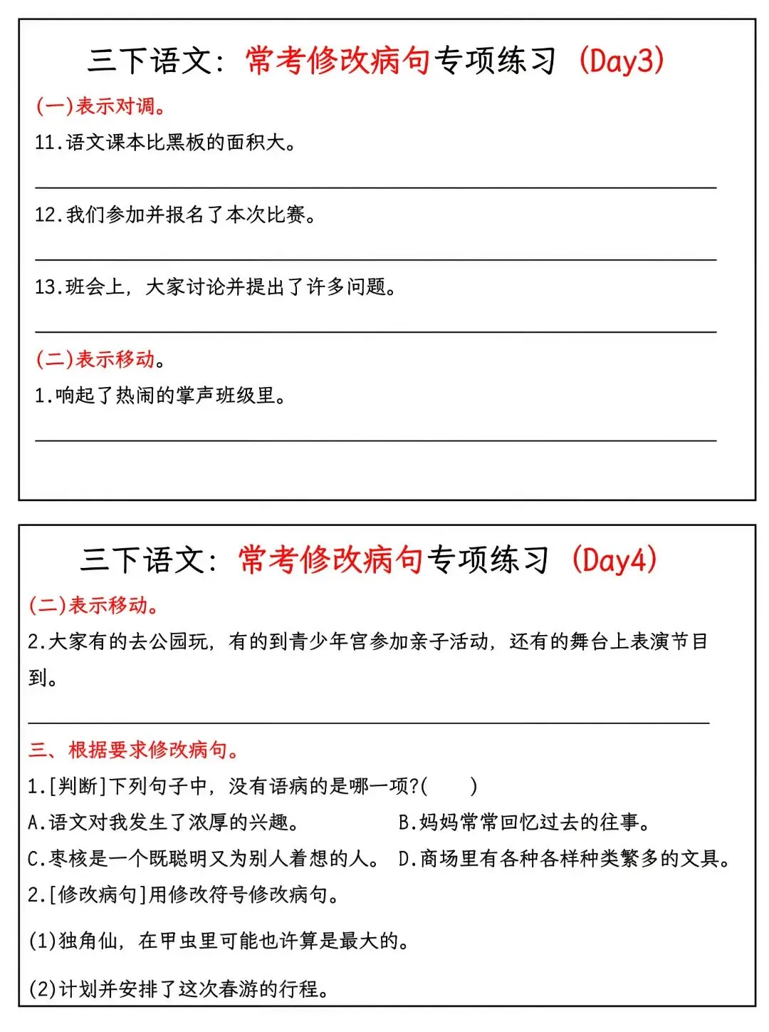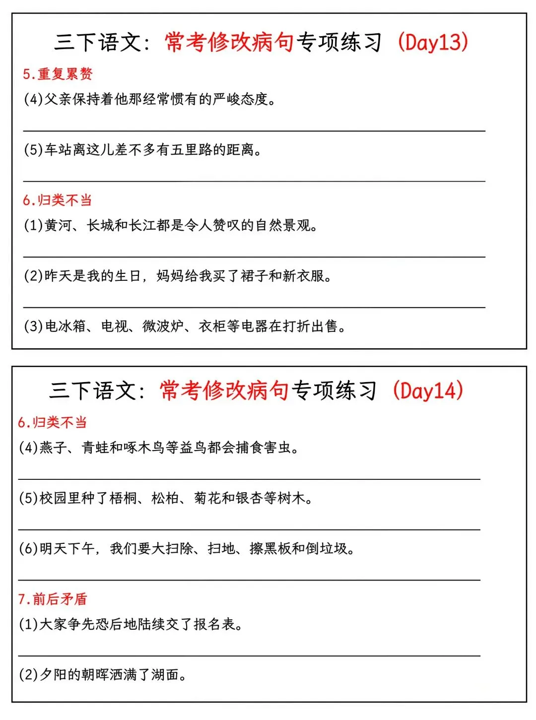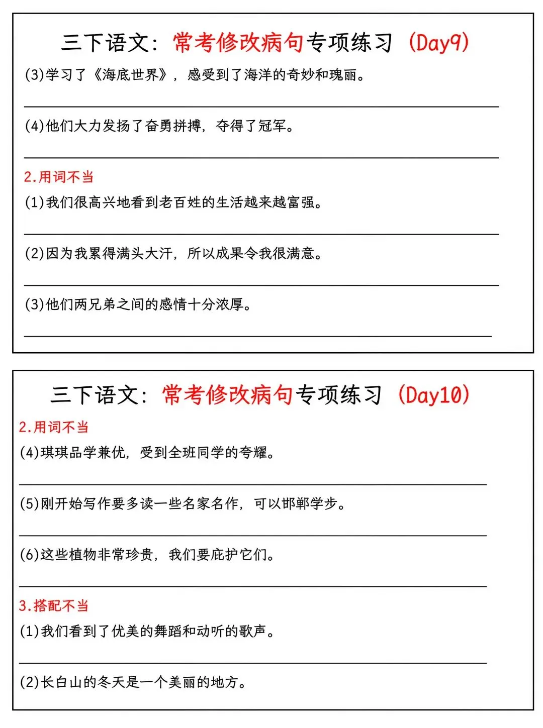 三下语文:常考修改病句专项练习(完整电子版可打印)