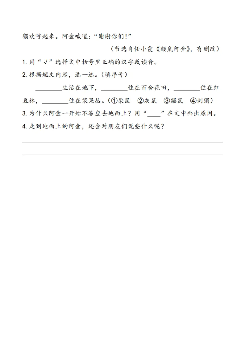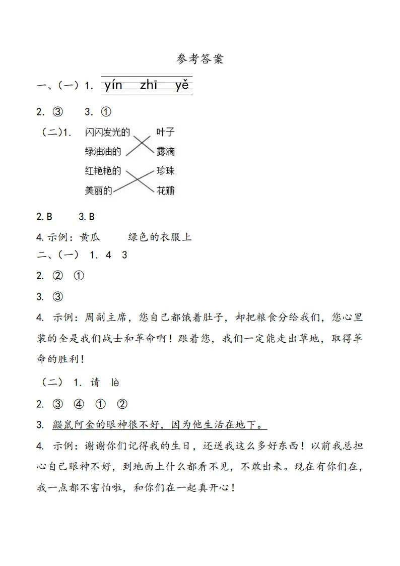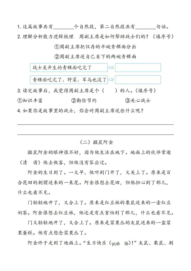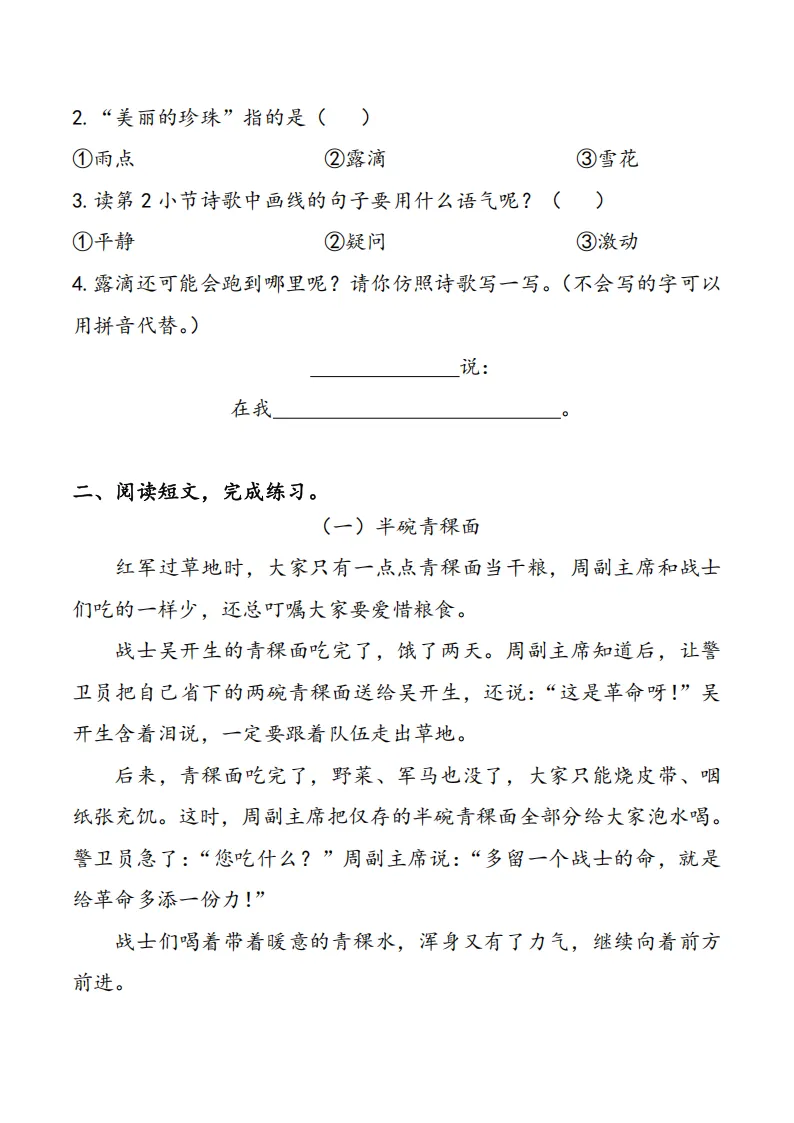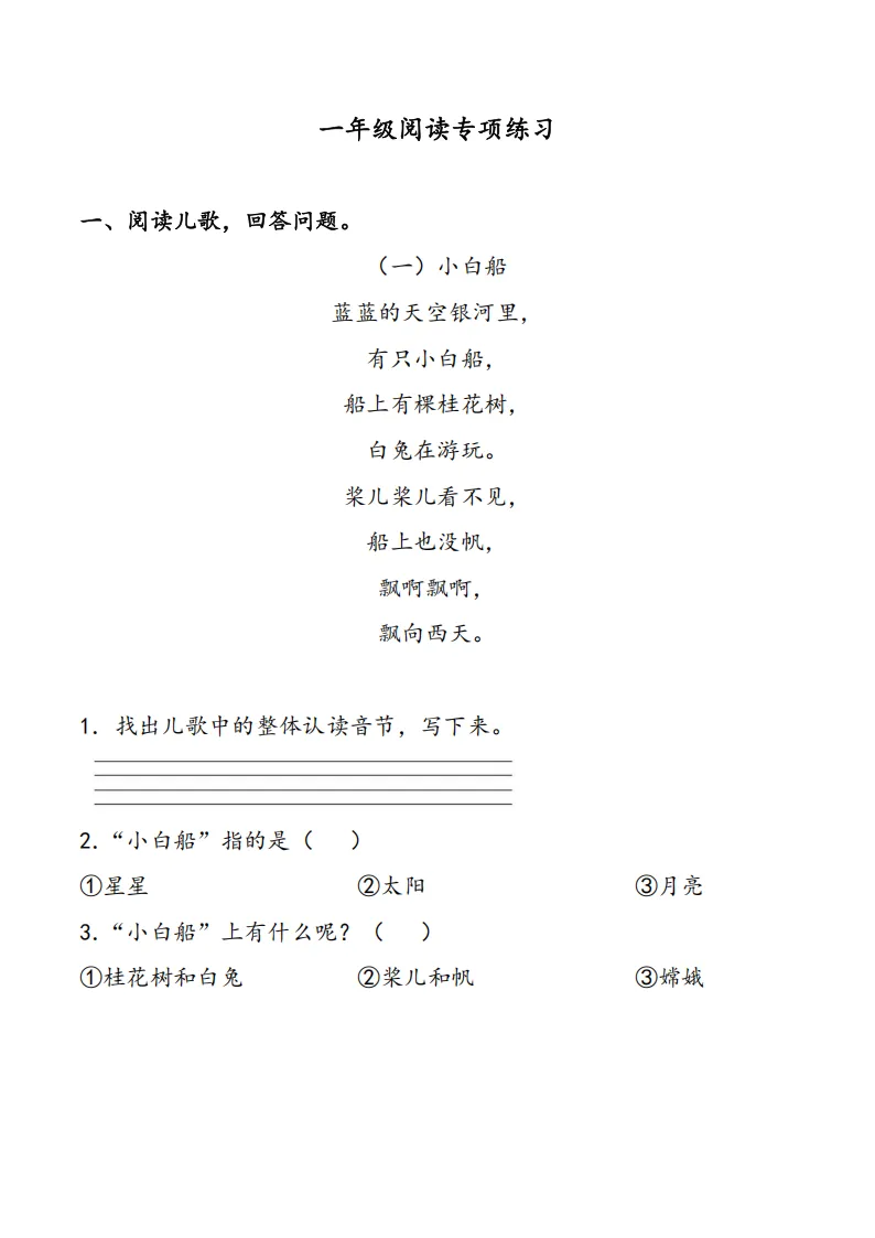 专项练习 I 清明阅读专项练习1年级 电子版可下载打印