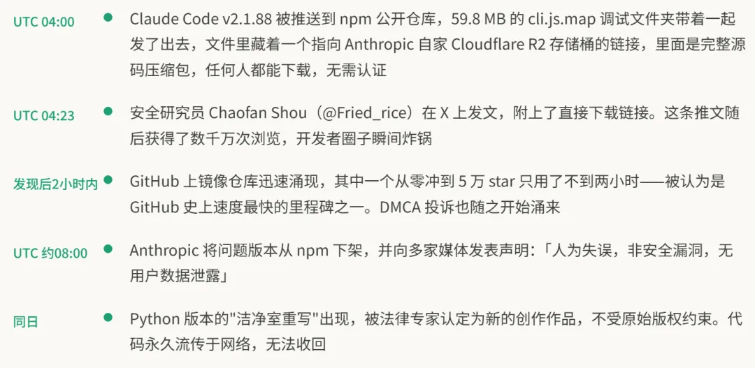 而且别忘了,这次源码泄露本身,是 Anthropic 13 个月内的第二次源码外泄。早在 2025 年 2 月,Claude Code 早期版本就曾发生过类似事故,暴露了工具的运行架构和内部系统接口。两次事故如出一辙,说明这个问题在内部并未被真正修复。