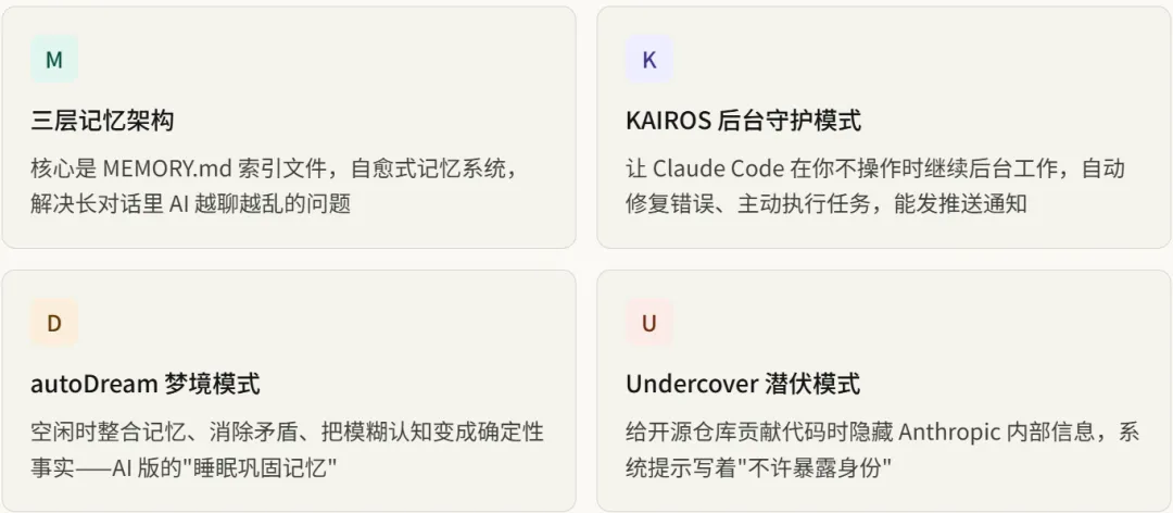 这件事最魔幻的地方在于:Anthropic 专门在代码里构建了”Undercover Mode”,设计初衷就是防止内部信息泄露到外部代码仓库里——然后,他们通过一个忘记写进 .npmignore 的配置项,把整个产品的源代码亲手推送到了全世界。