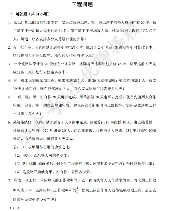 小学工程问题核心解法与专项练习题!(可下载打印)