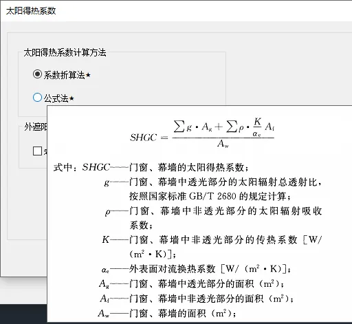 · 太阳得热系数设置: