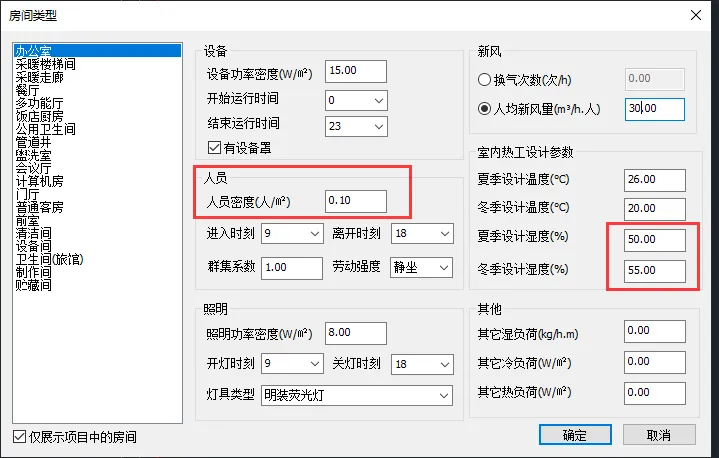 · 冷负荷设置: