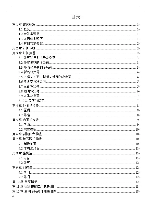 · 冷负荷计算书:
