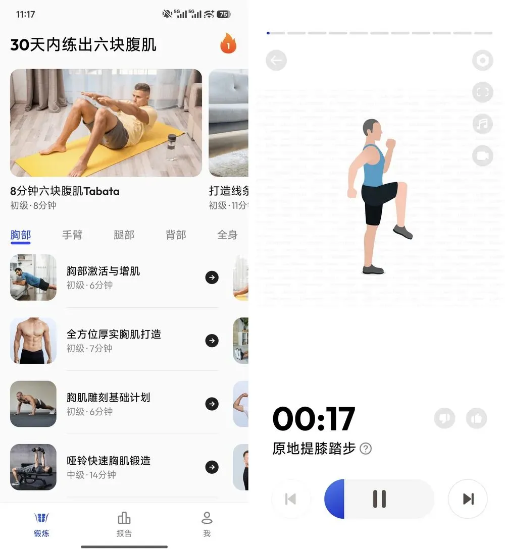 这个软件超贴心,搞了个30天循序渐进的锻炼计划,不管你是健身小白还是想提升,都能从入门慢慢练到进阶。每天就安排一组专门练腹肌的动作,不用买啥器械,也不用专门找场地,在家不管是趴着还是躺着,都能开练。而且啊,所有动作都有动画小人给你示范,节奏明明白白的,你跟着做就行,完全不用担心动作不对把腰给伤了。