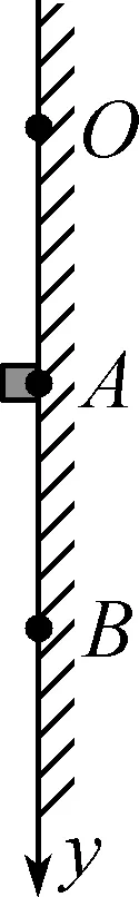 3. 如图所示,一处于水平方向电场中的竖直金属板左侧面均匀涂有绝缘薄层,沿板表面建立竖直向下的y轴,场强大小随y轴方向均匀增大,关系为E=E0+ky(E0、k为常数),OA=AB.将带电小物块放在A点时,物块恰好静止.现将该物块由原点O静止释放,则物块下滑过程中( )