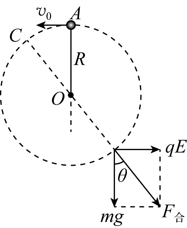 (2) 设电场力和重力的合力与竖直方向夹角为θ,则有