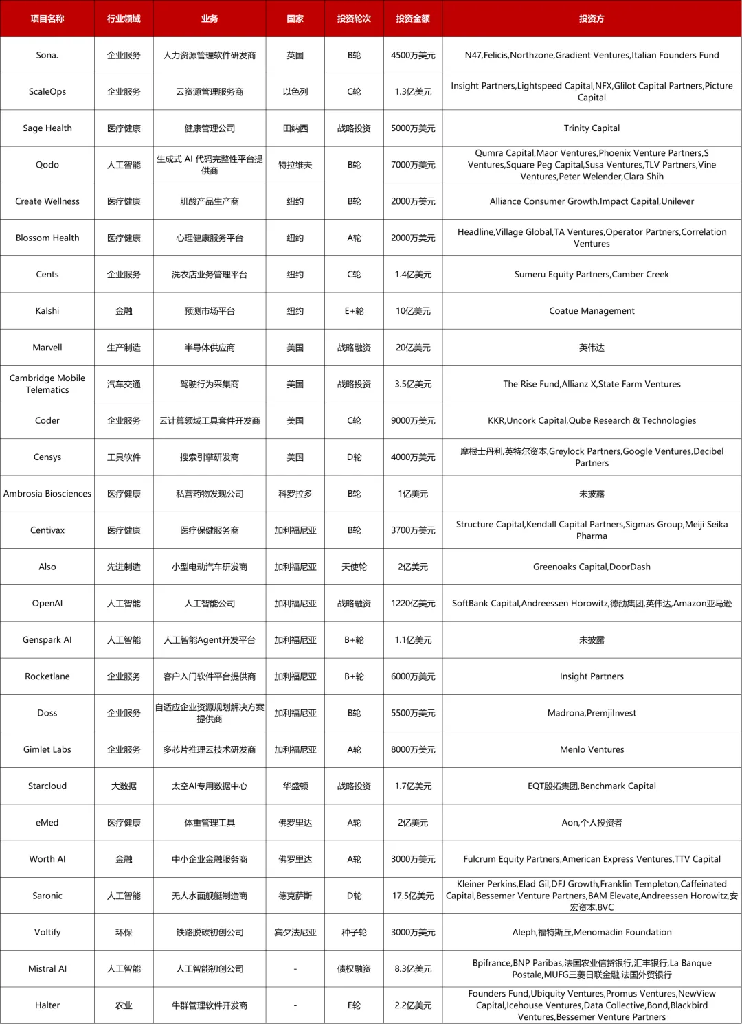 活跃的行业为企业服务(7)、医疗健康(6)、人工智能(6),