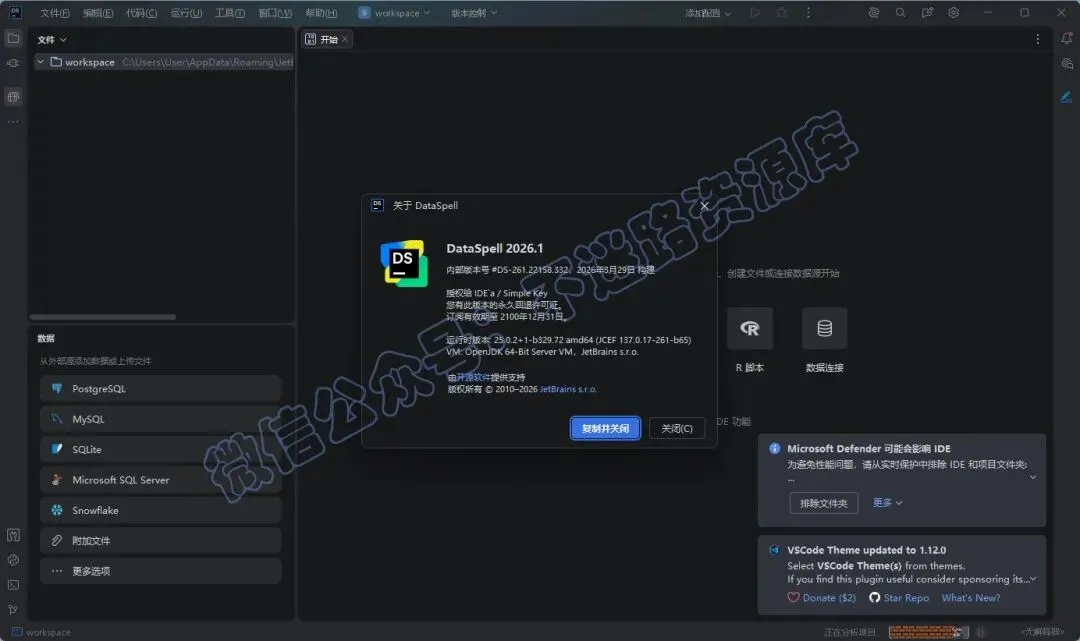 公众号关键词回复:DataSpell