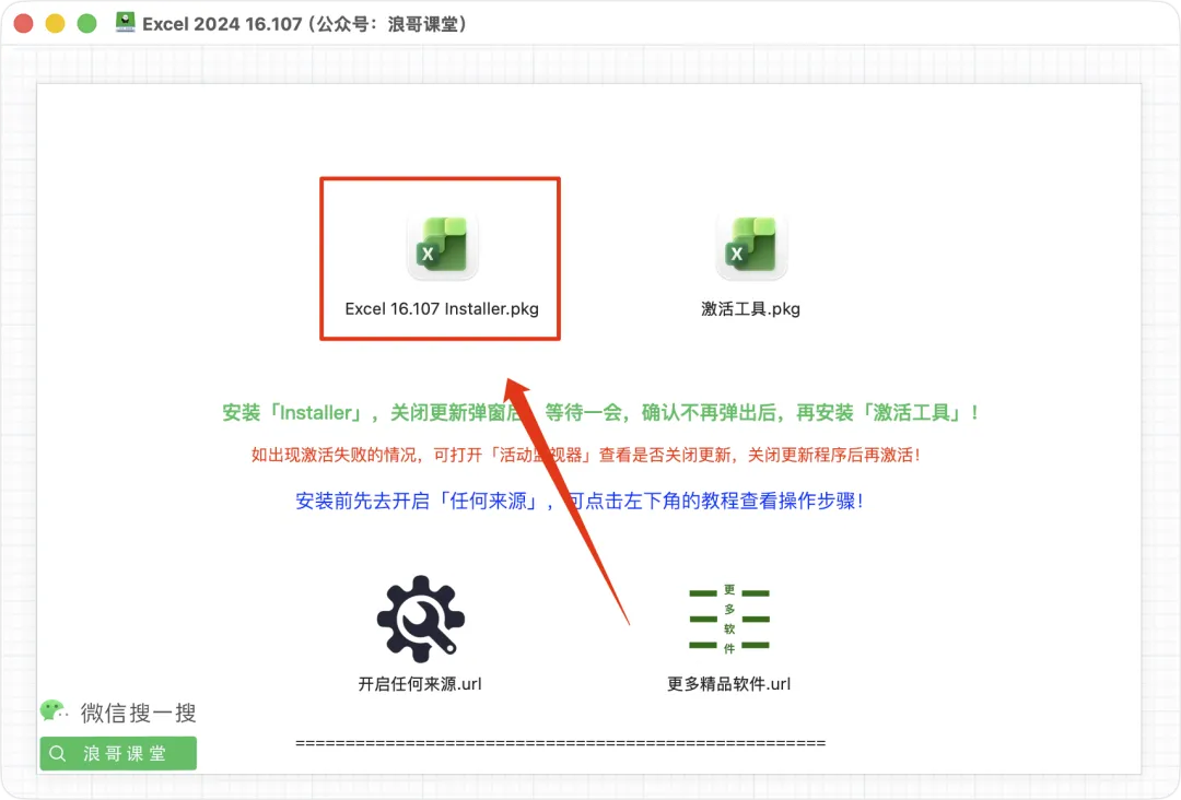 4、双击「Excel 16.107 installer.pkg」开始软件安装; |