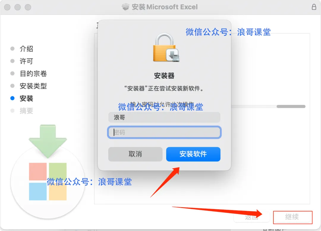 | 13、点击「安装」,然后输入电脑登录密码,点击「安装软件」; |