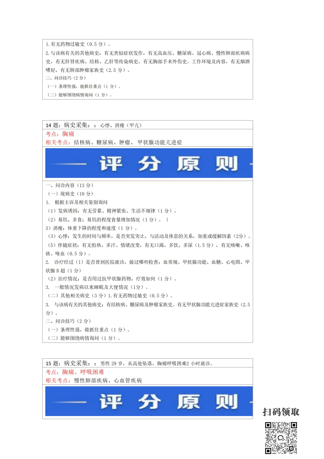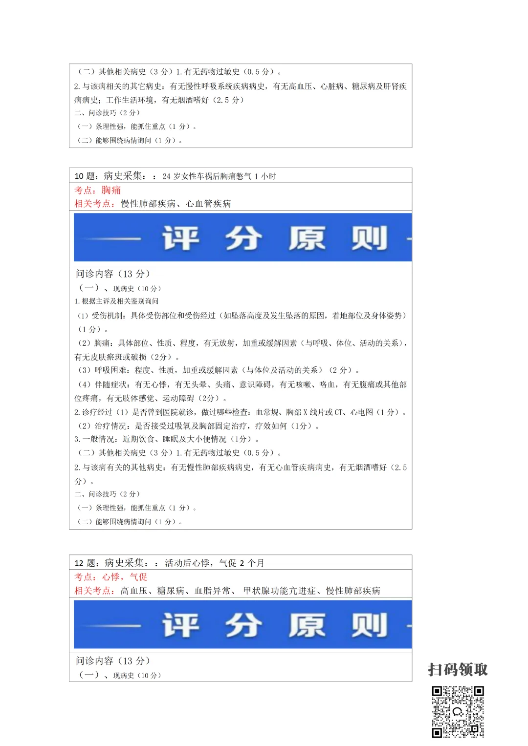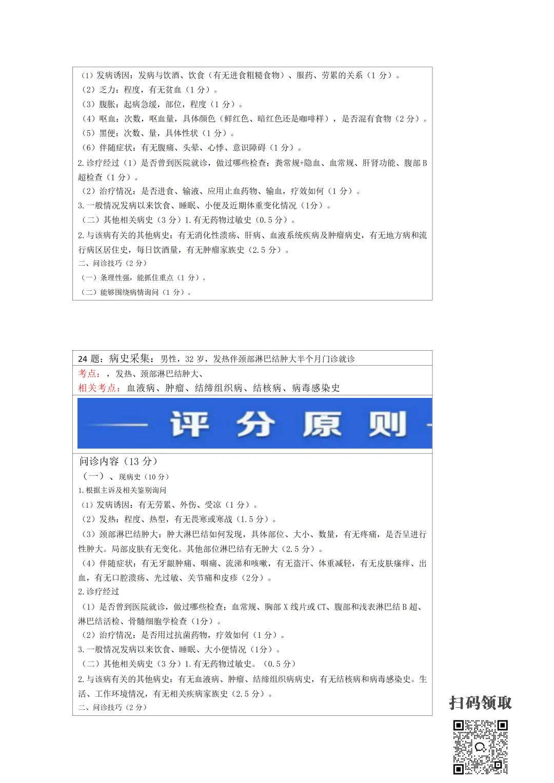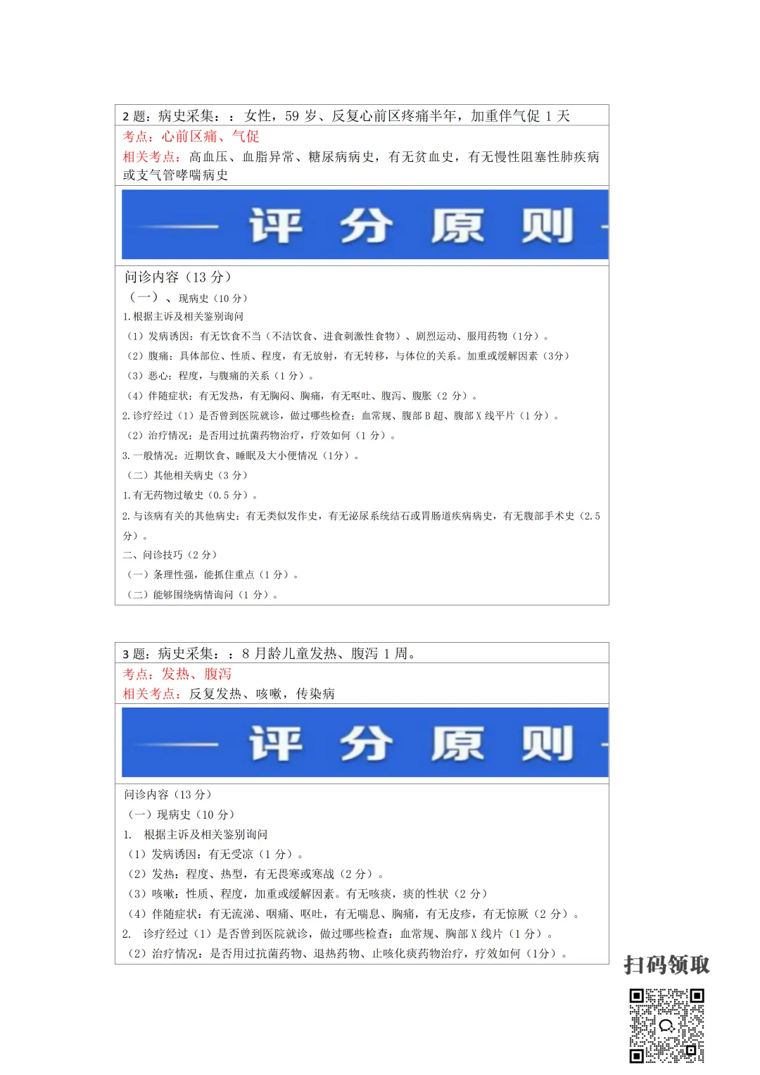 医师考试必备:病史采集万能公式(可打印) 执业医师实践技能考官手册 免费领取 (扫码领取) 病史采集万能公式及评分标准 领取方法 扫码领取 小程序领取 关注本公众号,获取完整版报考指南、考点及备考资料↓↓↓