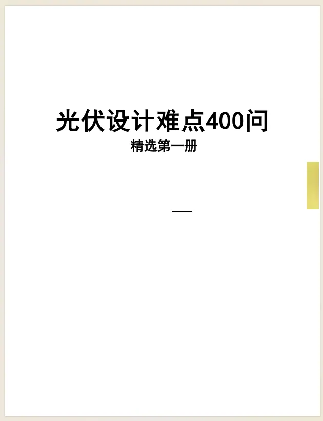光伏设计难点400问(第一册).pdf 今天小盒子分享的干货内容是《光伏设计难点400问(第一册).pdf》供大家参考,文末可领取高清文件。 需要高清源文件 扫码添加好友 回复 “光伏400” 2025光伏热门项目、人脉资源 责任编辑:北一 审核:诸葛 ↓点击阅读原文,报名光伏盒子年度VIP会员!
