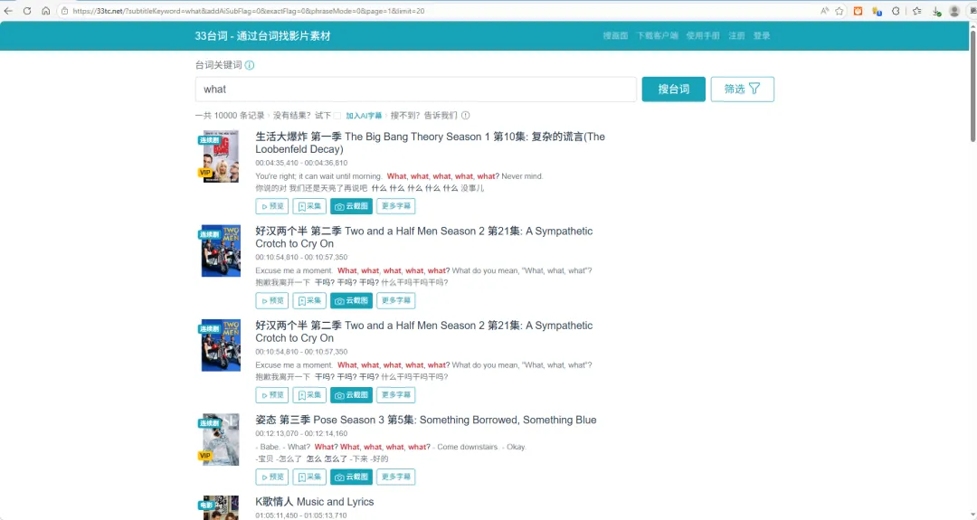 做影视混剪必备网站,是一个通过台词查找影片素材的在线工具平台,能够帮助用户快速定位到特定台词在电影或视频中的出现位置