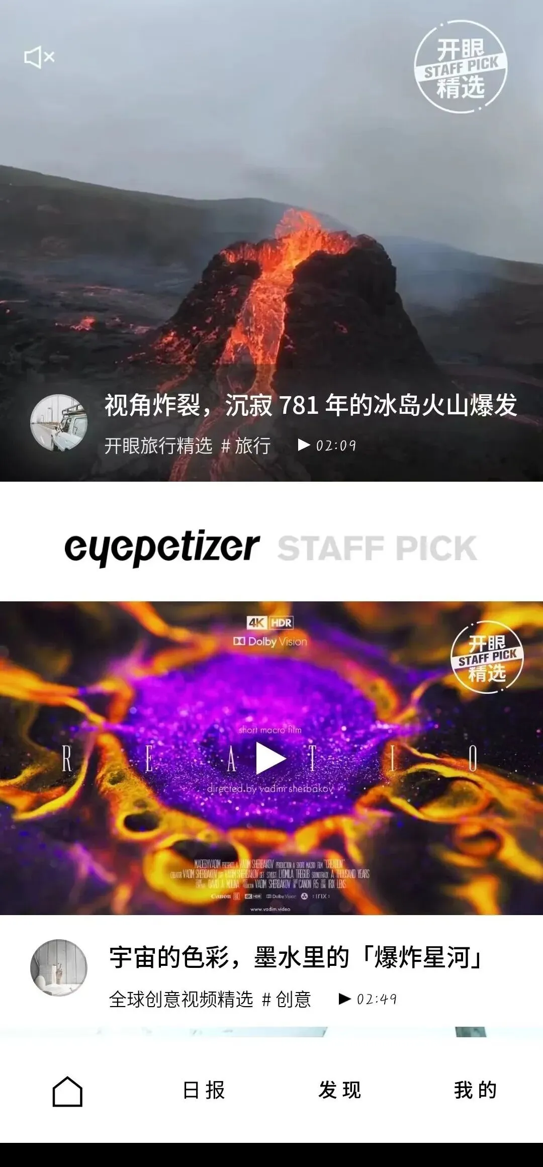 汇集了动画、广告、影视、运动、创意、游戏、旅行等领域的优质短视频,同时聚集了创意人群。以创意为核心,包括创意视频、海报和图片,适合喜欢发现灵感和视觉美感的用户