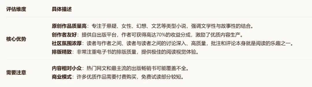 这类平台更注重出版物的品质、阅读体验的纯粹性,或是聚焦于特定类型的精品内容。