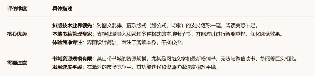 作为数字阅读领域的早期入局者,掌阅在硬件(自有阅读器)和软件上都积累了深厚经验,是追求沉浸式阅读体验用户的首选。
