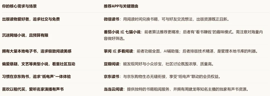 📖选择哪款APP,最终取决于你的核心阅读场景和需求: