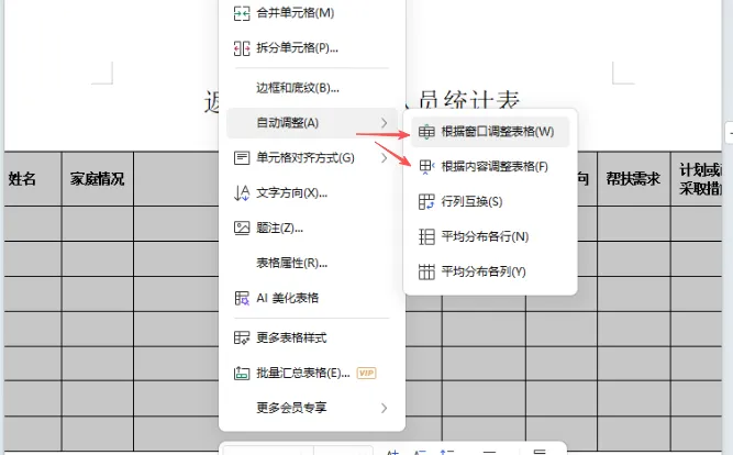 选中整个表格,点击鼠标右键,点击自动调整,选择根据窗口或者根据内容调整表格,这样表格就可以快速调整到页面以内啦