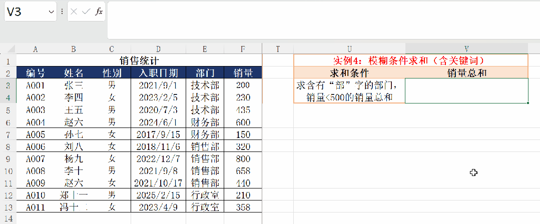 实例4:模糊条件求和(含关键词)