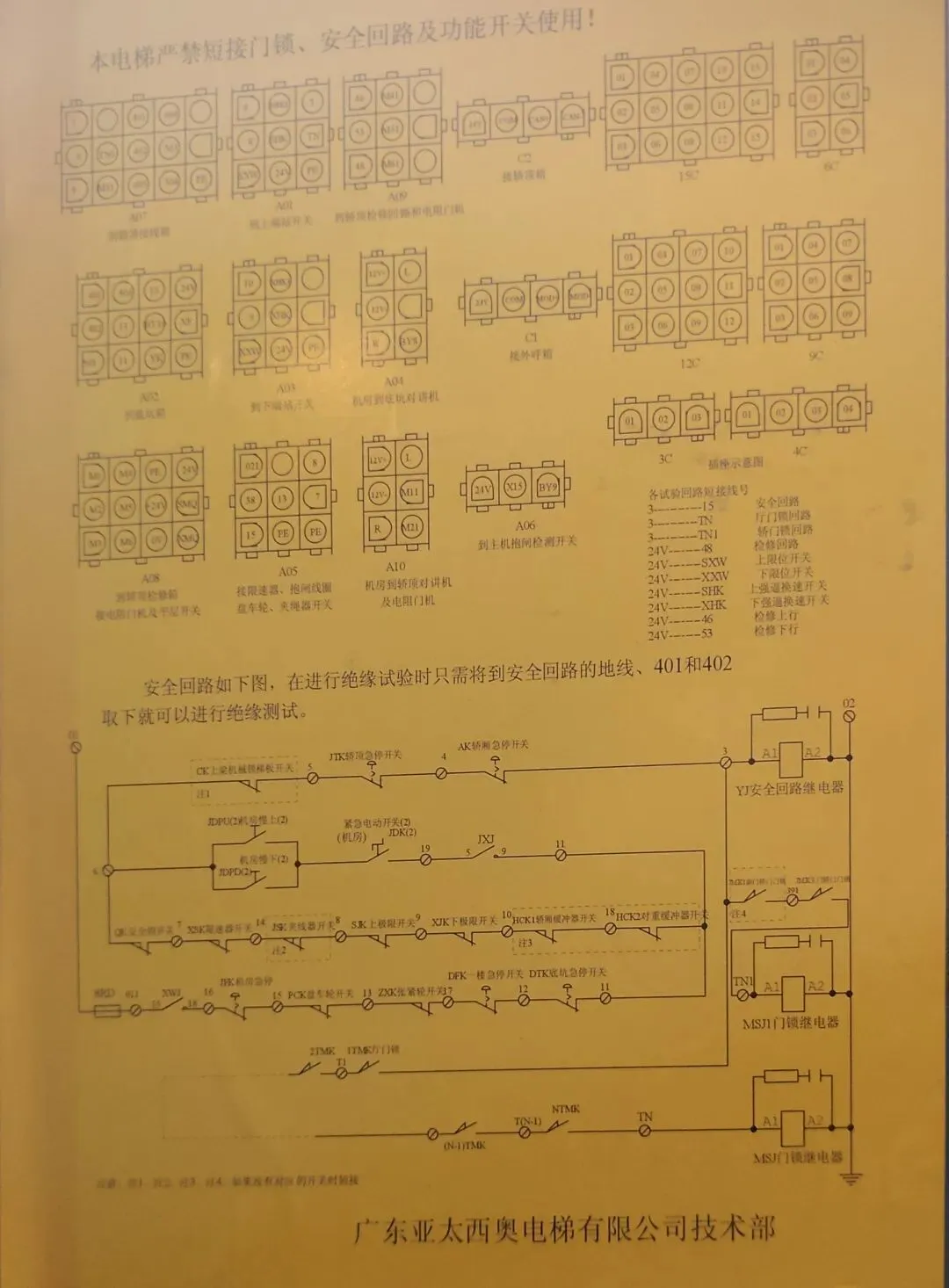 广东亚太西奥电梯安全回路图纸、控制柜插件详解