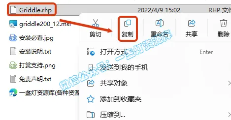 10.返回安装包,鼠标右键【Griddle.rhp】 选择【复制】