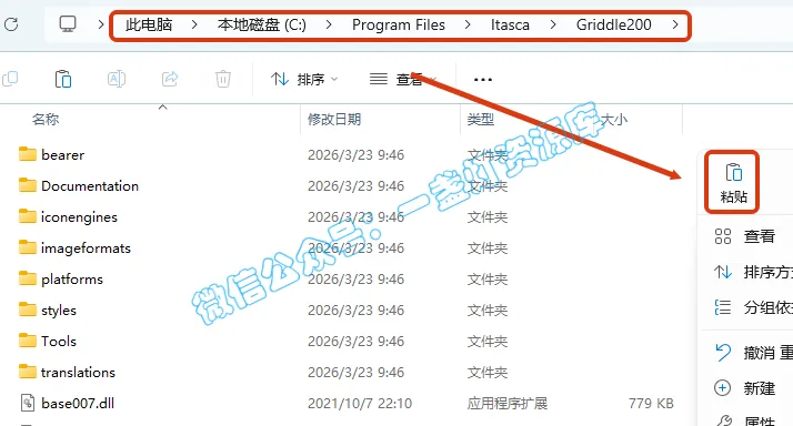 11.找到第5步时设置的griddle安装目录【C:\Program Files\Itasca\Griddle200】,在空白处右键选择【粘贴】