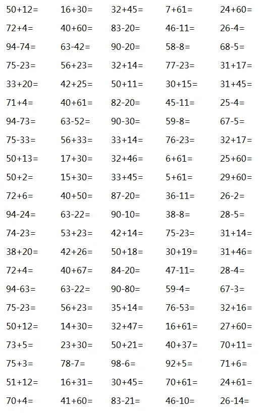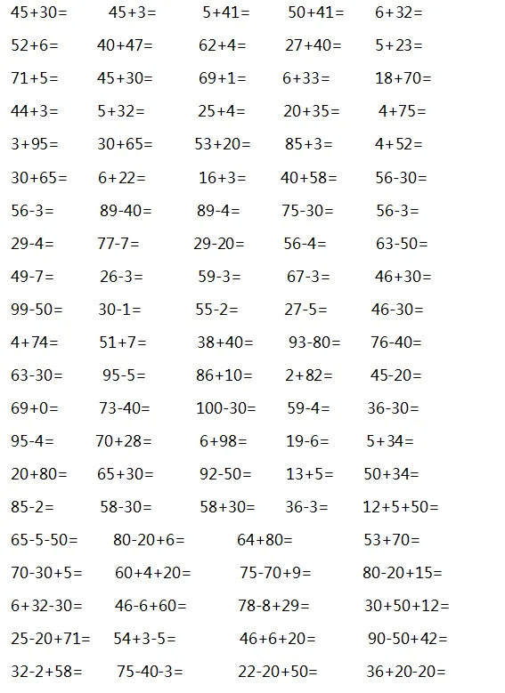 另外口算的练习过程也能提高孩子的记忆力,特别是三位数的加减,只有记对数字才能计算正确;同时也能锻炼孩子的思维灵活性。如何提高口算能力,家长在辅导孩子口算时,首先需要关注的是孩子练习口算的方法,即分别进行“说”“读”“写”的三遍练习,并分别达到三个要求:清楚、快速、正确。现在,我们一起来练习吧!