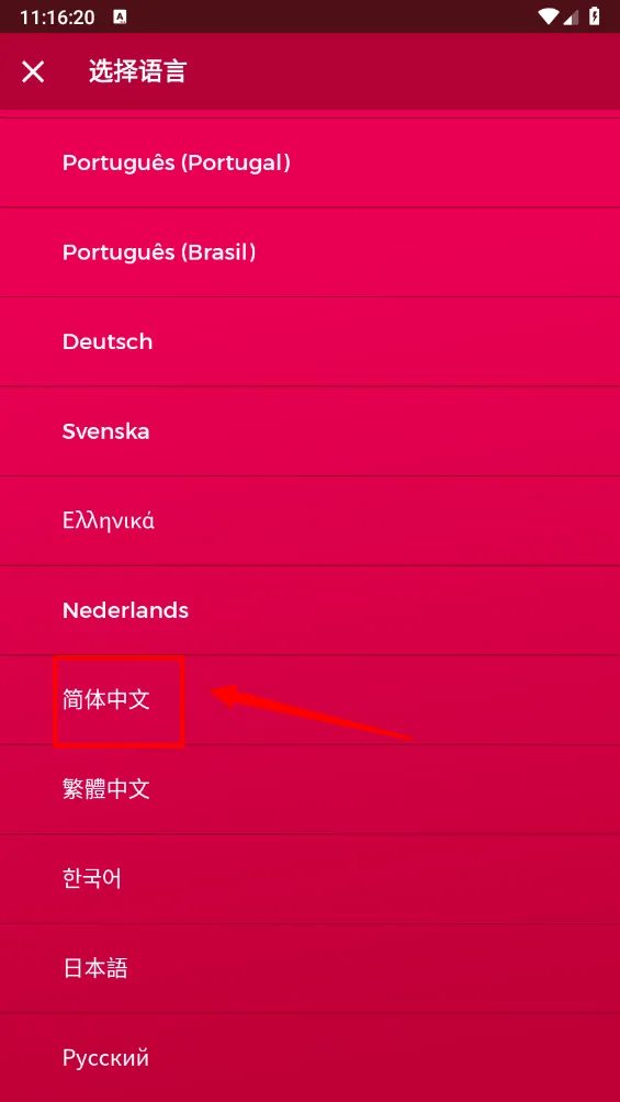 4、最后在选择语言页面,点击切换”简体中文”即可。