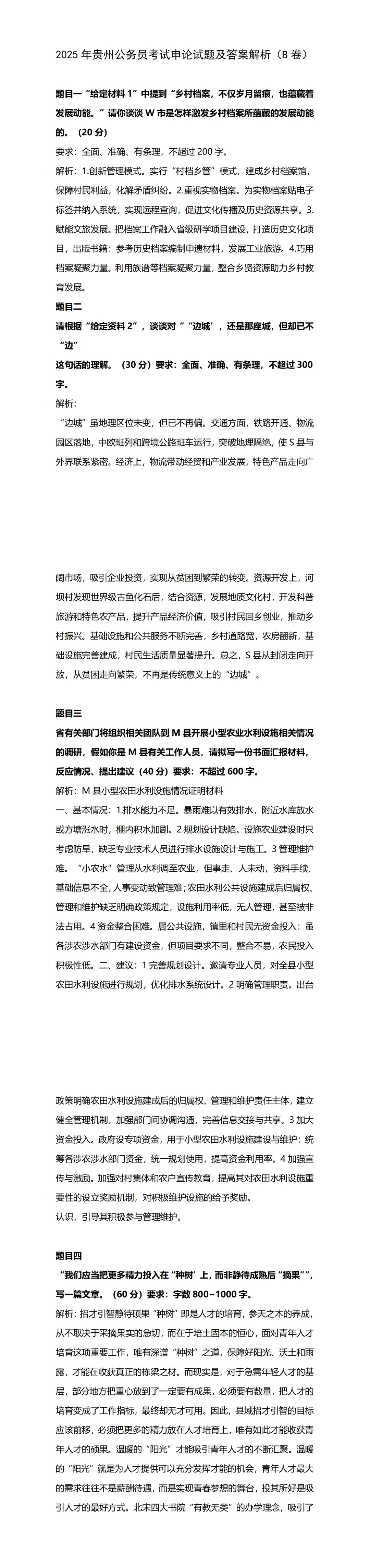 【免费下载】2025年贵州公务员考试申论试题及答案解析(B卷)