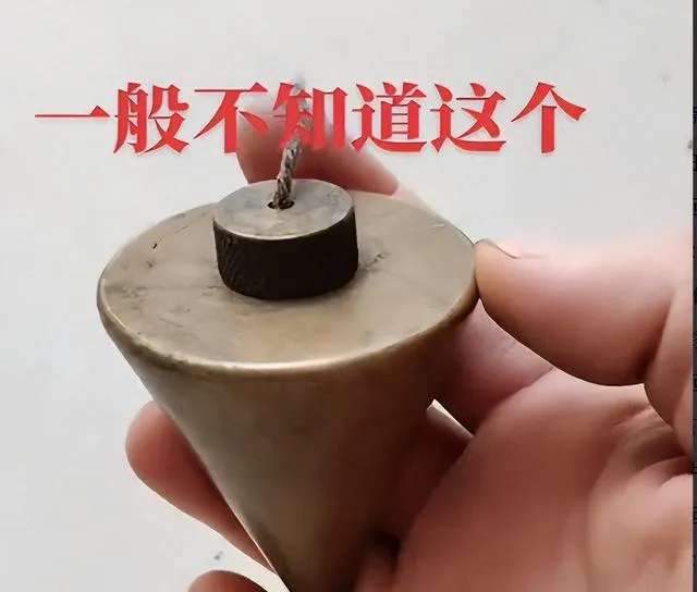 图中这个尖头的家伙叫**"墨斗坠"**,又有人管它叫线坠,木工师傅的老搭档,外头看着不起眼,拿在手里沉得很,这东西一头有绳,一头实心铜,干活的时候拿它一荡一拉,啪一下弹地上,一条直线立马就出来了,墙皮、地面、板材,没它真画不出那么直的线,小时候就爱拿这小锥子荡来荡去,爷爷总说小心别砸脚,别瞧不起这条线,以前匠人都靠它吃饭,现在电动水平仪出来后,这种老式墨斗见得少了。